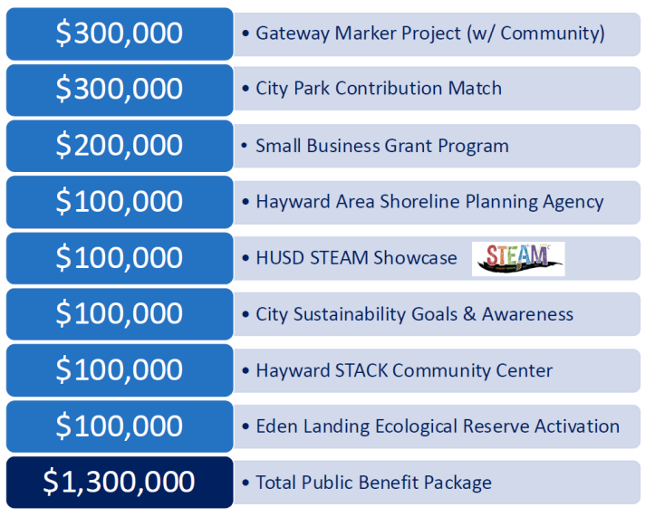 Now, if this looks familiar to you, I covered this when it went to the Economic Development Committee back in June. Since then, the package has increased from $1,100,000 to $1,300,000. And it may get even bigger. After meeting with the Hayward Area Shoreline Protective Agency (HASPA), they pushed for a bigger package.