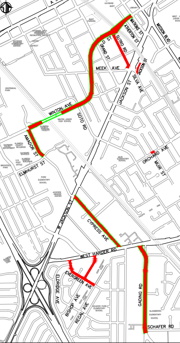 Look for new pavement and bike lanes along D Street and Winton, as well as parts of Amador (by the Courthouse), Cypress Ave, and part of Gading Road. It looks like they’re building out a bike lane network, though the traffic along Winton and D still don’t make for particularly enjoyable rides. At least it should be a bit safer.