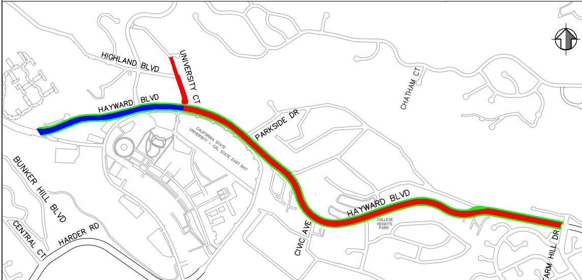 If you’re traveling up past CSU East Bay, you can look forward to new pavement and even bike lanes. Not sure how many people will be biking up that hill, but for the hardcore among us, it’ll be a lot nicer with dedicated bike lanes.
