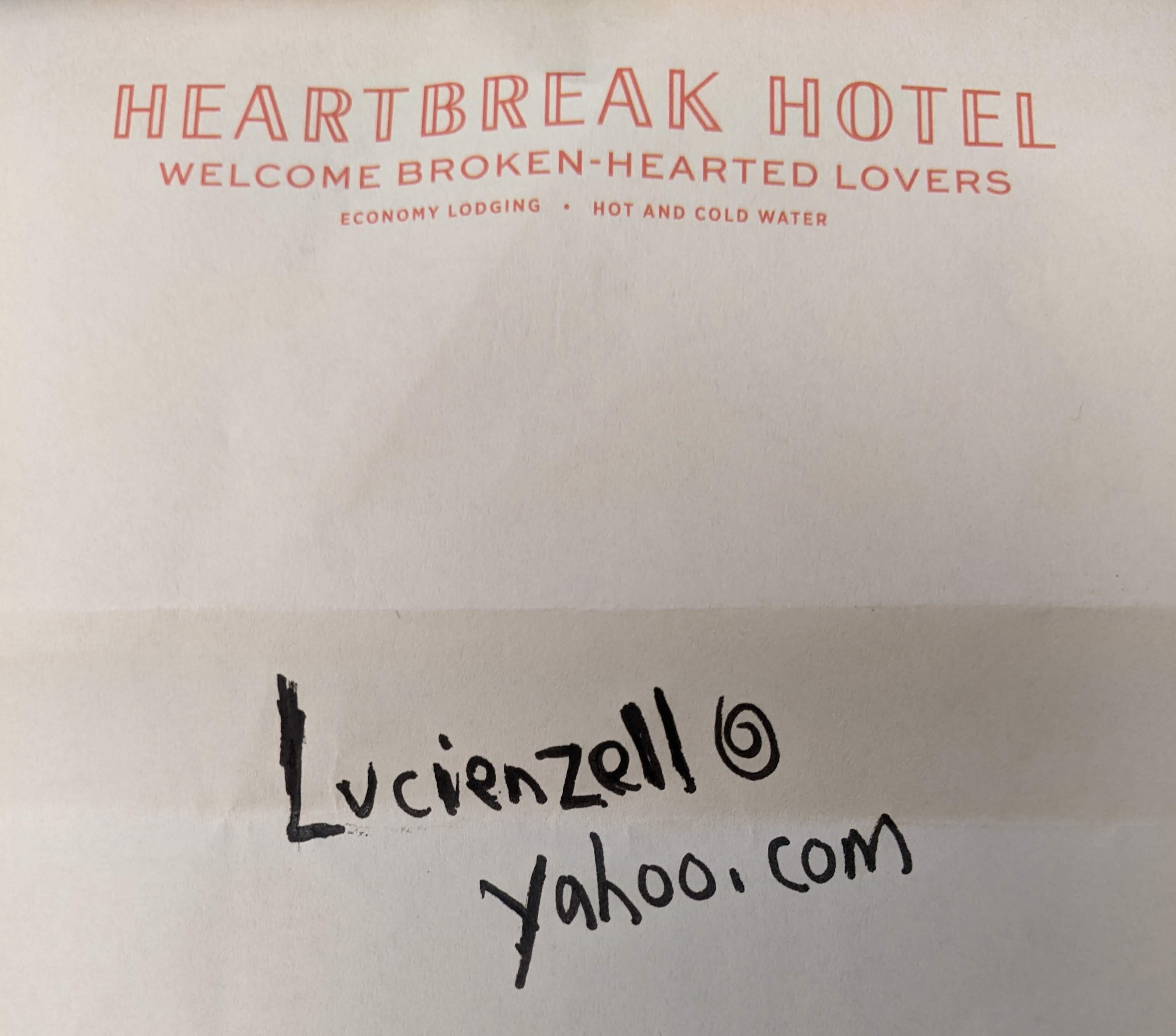 As he writes his book prescription on his Heartbreak Hotel notepad, Zell listens to the man’s connections to Europe and time spent studying abroad. Zell then writes an additional recommendation and a personal note; an extra tipple, free of charge. The man seems to radiate calm and contentment after the encounter. Forging a connection, even a brief one, with someone in this world can be such a modern rarity. But this evening, Lucien Zell calmly dispensed literary prescriptions to those in need of something more. And, he hopes, others can use this model to connect with more people and stories in and around our lives.