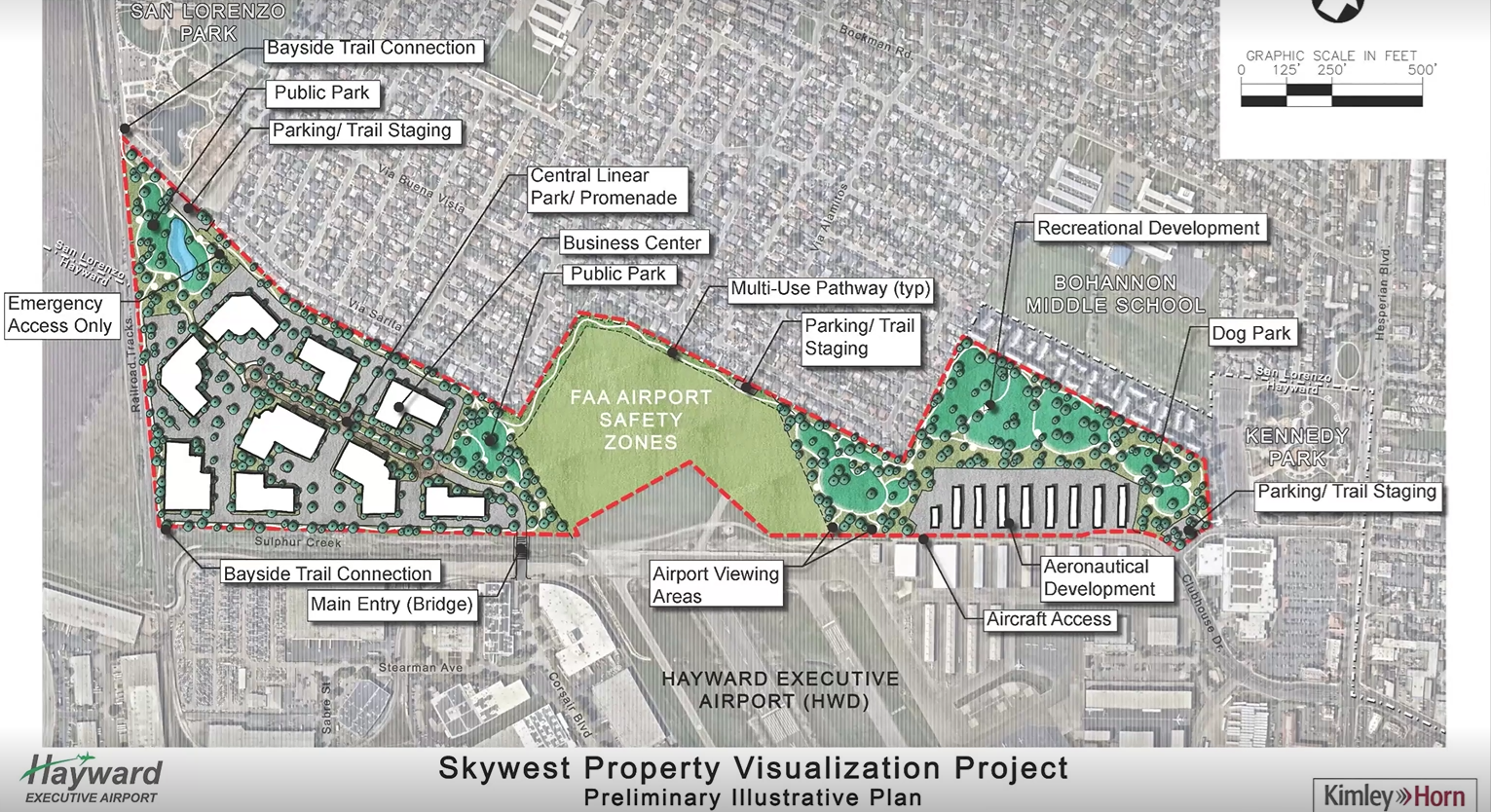 However, since the land is owned by the Hayward Executive Airport, its development is subject to a number of different restrictions—including the Federal Aviation Administration. The Airport administration is developing a plan that attempts to balance all of the competing needs.