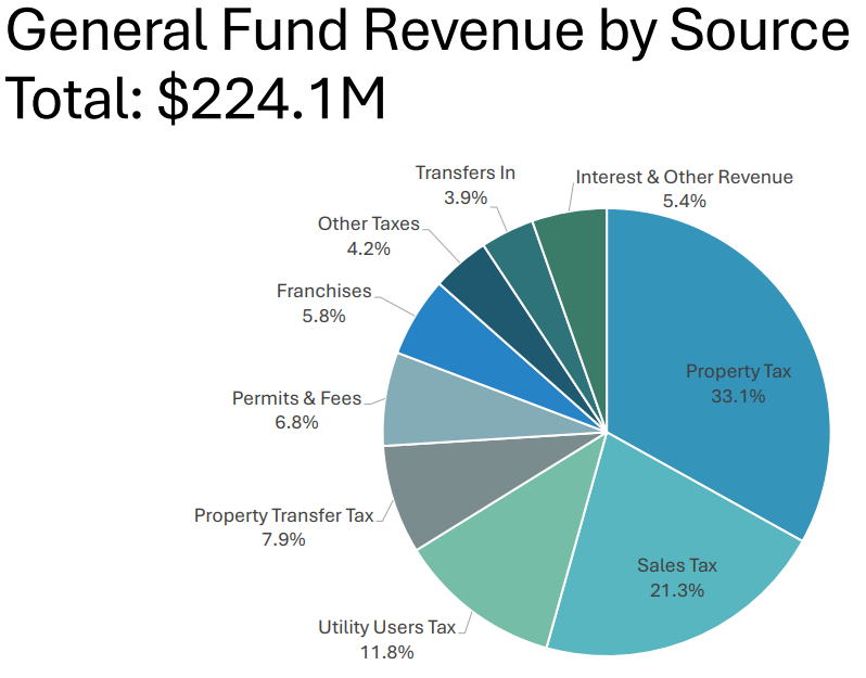 Most of the money comes from Property Tax, Sales Tax, and Utility Users Tax. That’s around 65% of the City’s revenue right there. It gives an idea of what the City does to make money (Hint: it’s taxes).