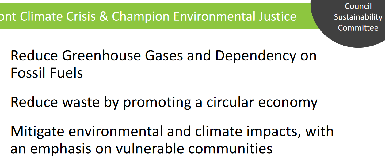 Some interesting plans for this section are providing compost hubs throughout the city and partnering with All In Eats to encourage food recovery. The City is also looking to plant a lot of trees, 1,500 per year—though it’s still unclear if that’s net or gross trees.