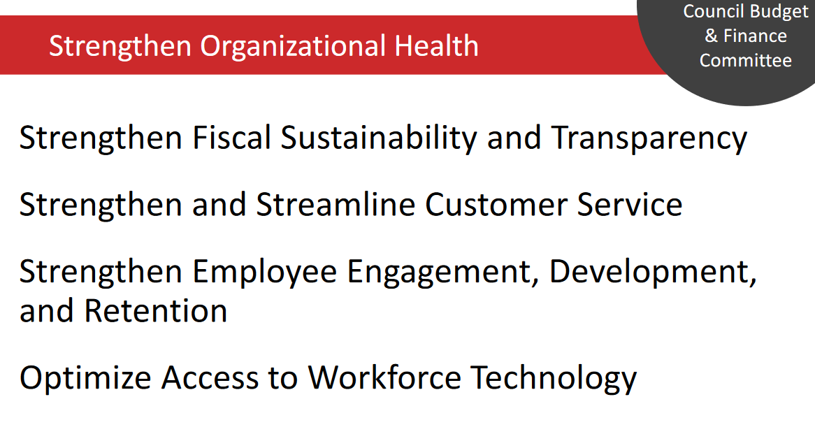 After being presented with the basic framework of the Plan, Councilmembers weighed in and provided feedback and potential changes that might be integrated into the final product. Understandably, everyone was hot for the Dashboard as data-driven governance is a very popular topic at the moment. And if it’s properly integrated, updated, and maintained, it could provide a lot of transparency for both the Council and the general public.