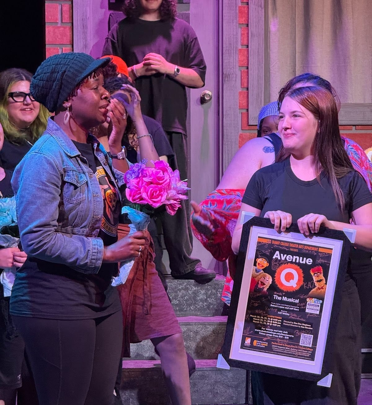 For community college students balancing coursework, jobs, and uncertainty about the future, those themes resonate deeply. Avenue Q offered not just a performance opportunity but a shared language for experiences many students were already navigating. Students consistently described Stephens’ leadership as central to building that environment. “Dee Dee is amazing and has made me feel completely welcome,” said Jax Freese. “It's just been such an amazing experience to work with all of these amazing people.”