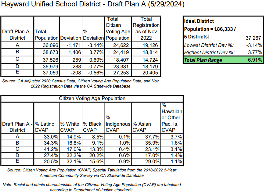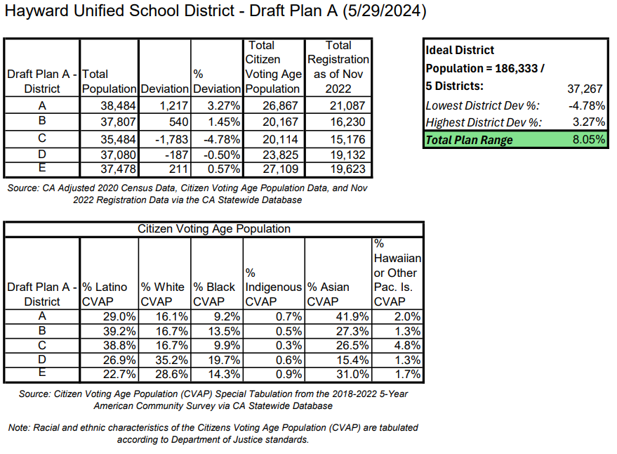 An eagle-eyed reader pointed out something to me that looked suspicious about the proposed HUSD district maps. We covered them last week, but one thing I hadn’t taken noticed was that although the maps have some very different boundaries, the demographics of each district somehow managed to remain exactly the same—at least according to the accompanying charts.