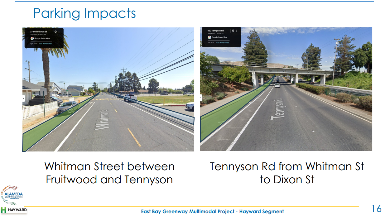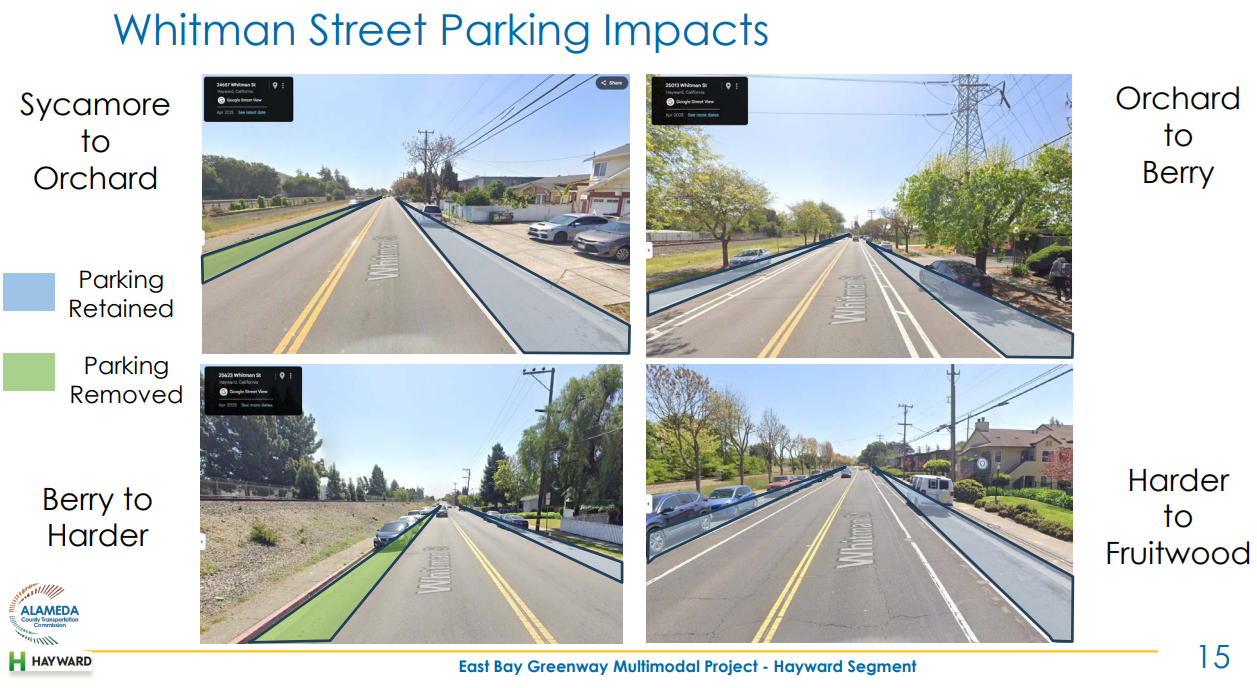 Some public speakers and Councilmembers complained that the alignment hadn't stuck to Mission Blvd or other arterial roads like Hesperian. Councilmember Ray Bonilla, who lives just East of Mission Blvd, also wished the project had been kept to Mission Blvd. He worried about the existing traffic on Whitman. "There's just so much traffic on that street," he said, saying he was concerned about people getting frustrated on school runs about the bike crossings.