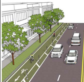 For most of Hayward, that initially meant putting in a Class IV bike path (see below) all along Mission, much like what already exists south of Industrial.
