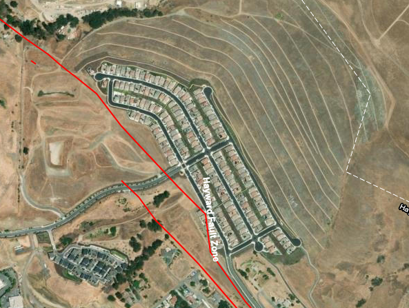 The old La Vista Quarry parcels used to belong to the City, but much like the old Highway 238 properties, the City decided to sell them off to developers to make some money. The unfortunate thing is that the Hayward Fault runs right through the old quarry.