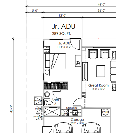 Commissioner Garg liked the JADUs because “it does, ultimately, alleviate some of the housing pressure in the area” despite the fact that there’s no mechanism to make sure they’re used for that purpose. She also asked for clarification about what makes it a JADU and Staff said that a JADU has an outside entrance and an inside connected door, too. Commissioner Garg mentioned that JADUs are really common in other places. She said that she does think that it’s less likely to be rented, but not unrentable.
