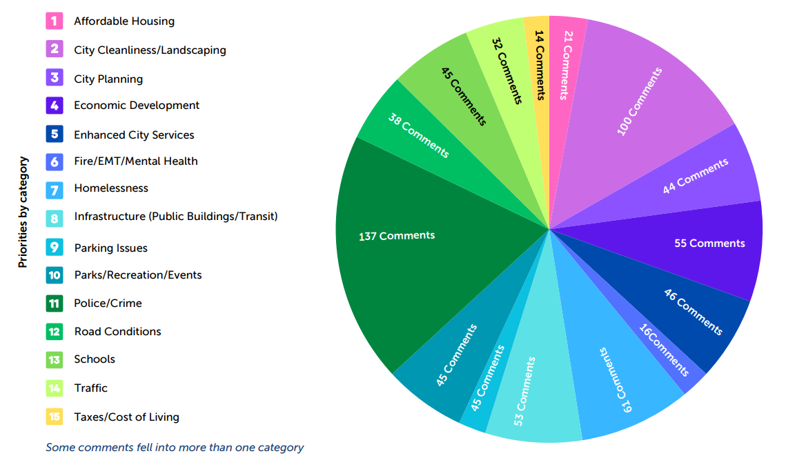 Councilmember Andrews supported all of the priorities, even the pavement improvements, though she stressed that the current pavement improvement index “is the highest we’ve ever had.” When it came to public safety facilities, she had an interesting idea to “include something in there that’s community facing—that’s life-affirming.” She didn’t detail what she meant by “life-affirming,” but went on to say, “We need public safety, but we need the life-affirming services, as well.”